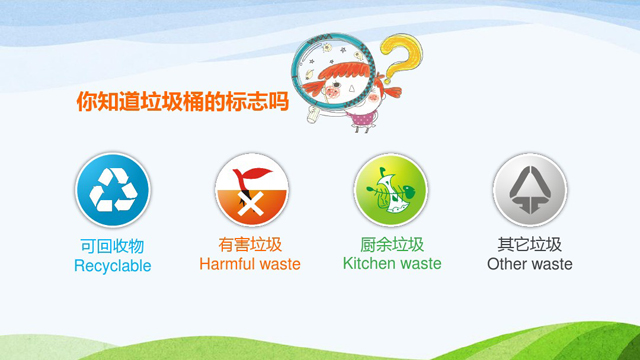 如今中古哦生活垃圾一般可分為四大類:可回收垃圾、廚余垃圾、有害垃圾和其他垃圾。目前常用的垃圾處理方法主要由:綜合利用、衛(wèi)生填埋、焚燒發(fā)電、堆肥、資源返還。廢紙是我們學(xué)習(xí)容易產(chǎn)生的垃圾,她的回收利用價(jià)值很高:回收利用1噸廢紙可以再造出0.8噸好紙,可以挽救17棵大樹,節(jié)省3立方米的垃圾填埋廠空間,降低造紙75%的污染排放,而每張紙最少可以回收兩次!以下最新垃圾分類ppt模板由分類垃圾桶網(wǎng)收集整理。