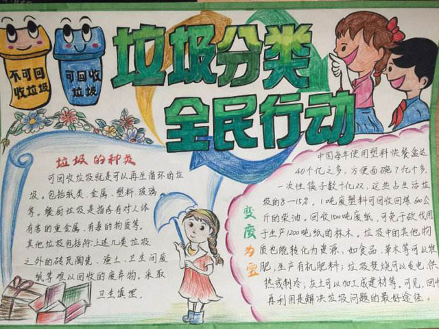我們每天都會產(chǎn)生很多垃圾,這些垃圾不能隨意丟棄,要扔進相應的垃圾桶里面,而且要分好類。玻璃,金屬,塑料,紙類垃圾要放在可回收垃圾桶里面,其他的垃圾仍在不可回收垃圾桶里面。下面是由分類垃圾桶廠家收集整理的小學生提倡垃圾分類手抄報。